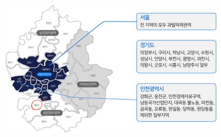 경기도 화성시, 동탄신도시는 비과밀억제권역에 해당됩니다.