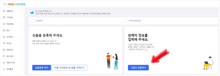 우선 사업자 인증과 입점 승인을 받아야겠죠?