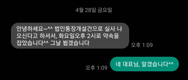 여기에 추가로 법인통장 개설을 하는데도 최근에 실사가 나오고 있습니다.