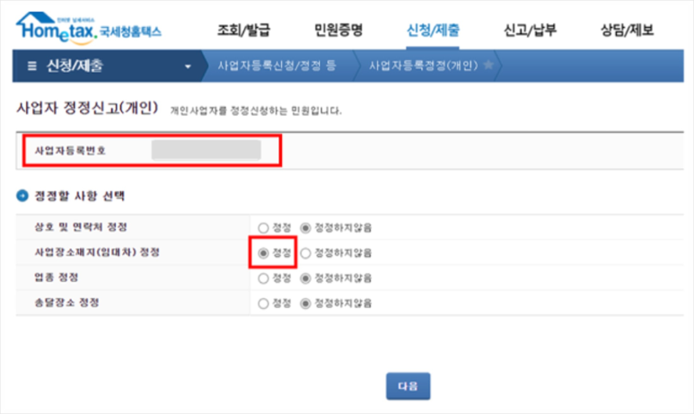 *상호, 업종 그리고 송달장소 정정도 한 번에 변경할 수 있으므로 일괄로 진행하시는 것이 좋습니다.