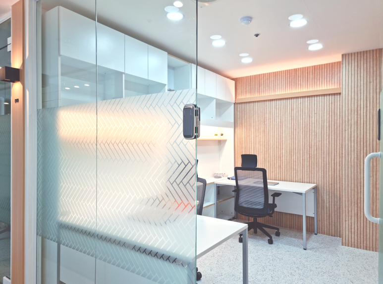복도 측은 강화유리로 시공해서 개방감을 보완하고, 타 오피스에 비해 조금이라도 더 넓게 설계하였습니다.
