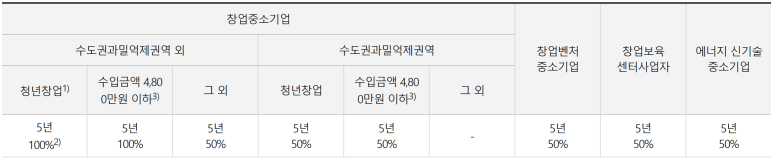 수도권 과밀억제권역 외의 지역에서 창업한 중소기업이라면 최대 5년간 법인세를 100% 감면받게 되는데요.