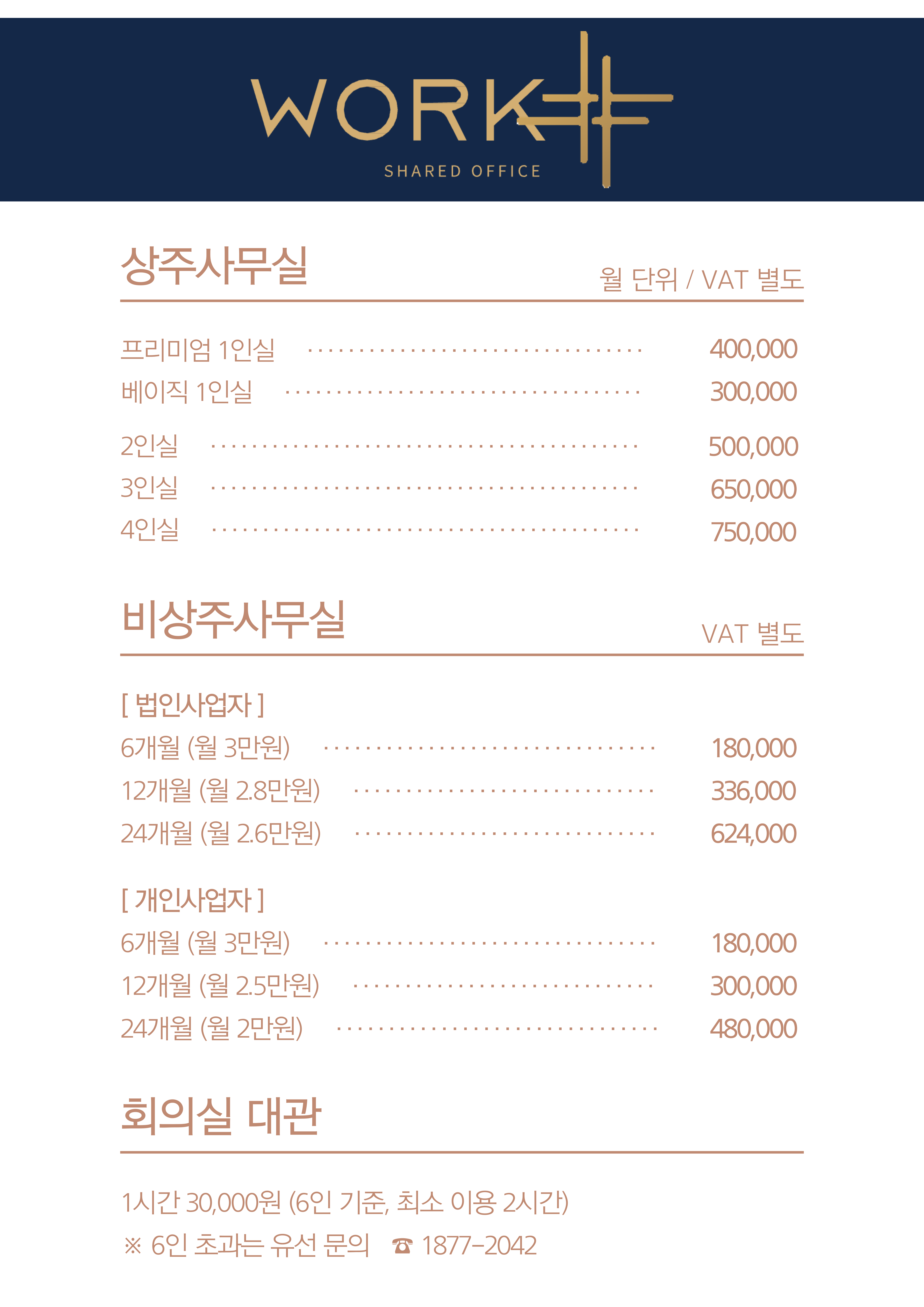 위 메뉴에서 보셨듯이, 워크샵공유오피스는 비상주사무실도 임대하고 있습니다.