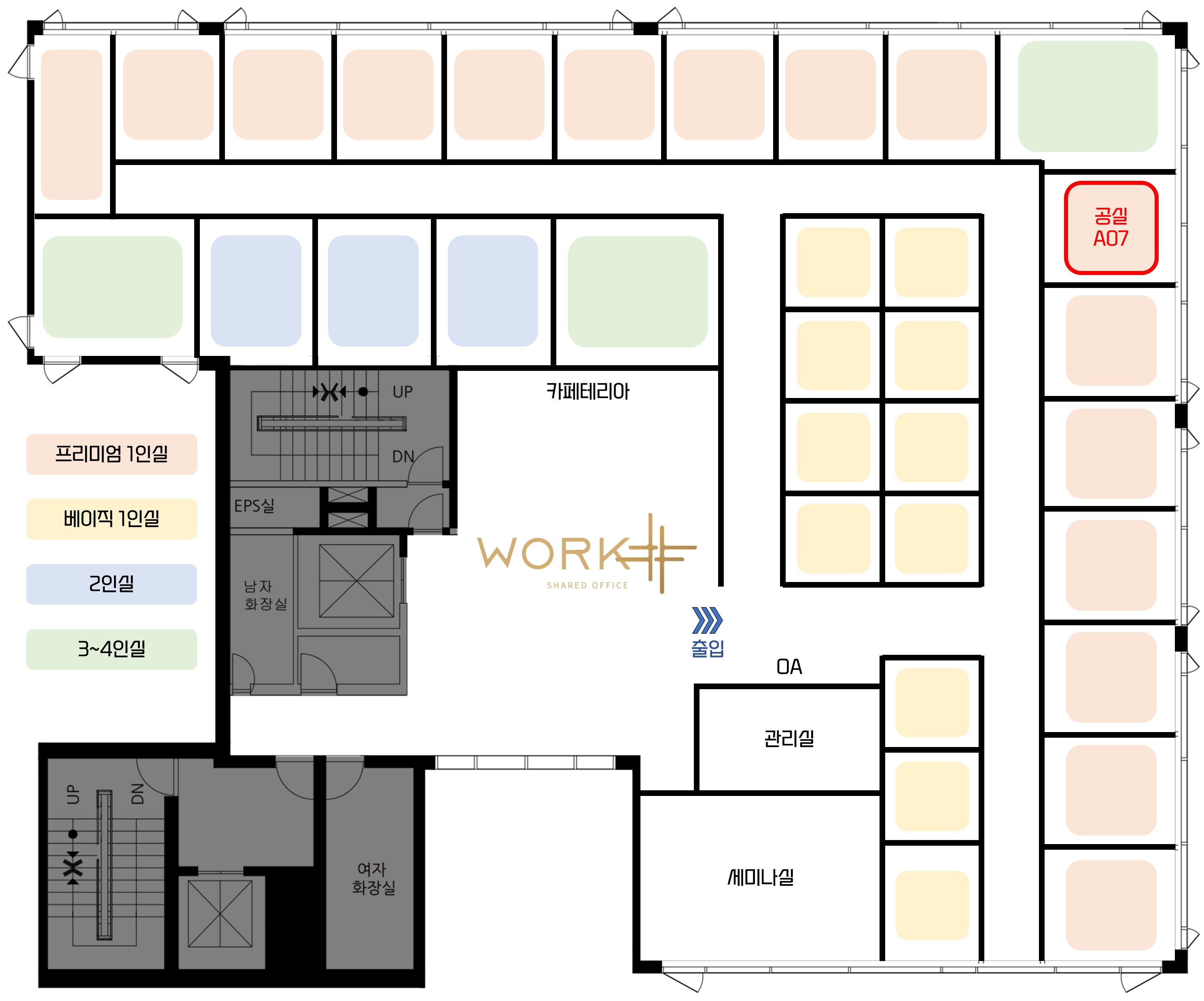 1인실부터 4인실까지 다양한 형태이며, 총 32개 사무실로 구분되어 있답니다.