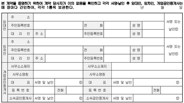 임대차 계약서 가장 하단에는 임대인과 임차인 정보를 함께 기입합니다.
