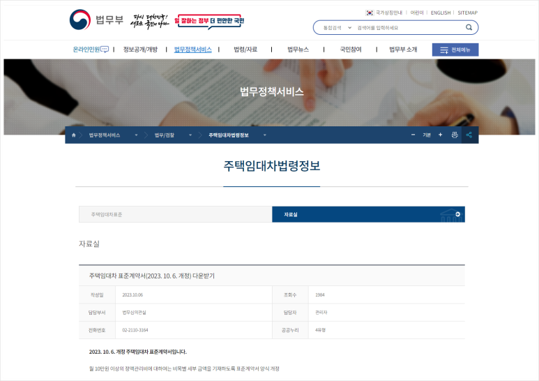 해당 주택임대차 표준계약서는 법무부 홈페이지에서 받아볼 수 있는데요.