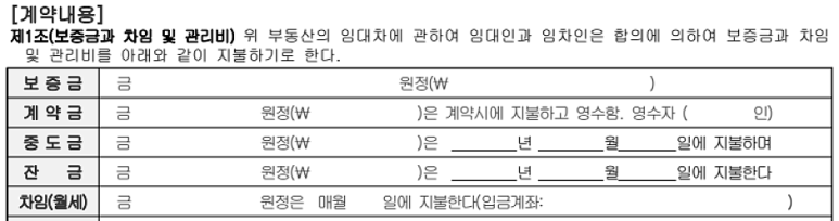 - 차임 : 월세를 말합니다. 매월 지불해야 할 월세를 기입합니다.