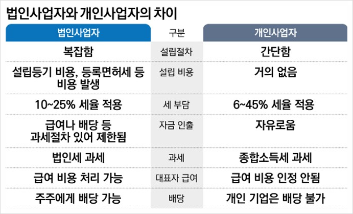 (법인사업자와 개인사업자의 차이는 아래 그림을 참고하세요)