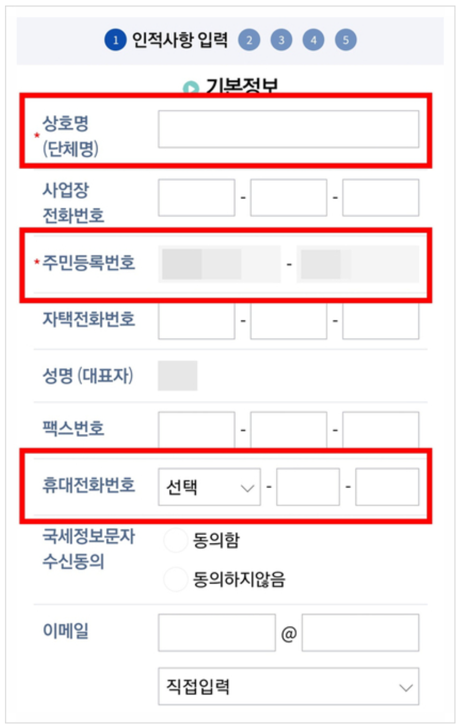 *상호명은 자동 입력되며, 나머지는 입력하지 않아도 무방합니다.
