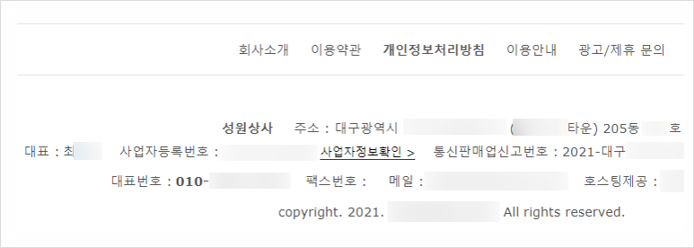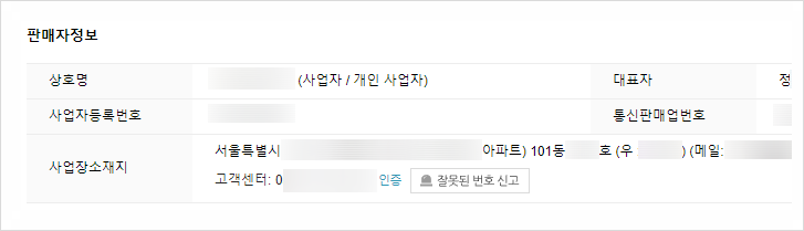 대표님의 개인정보가 스마트스토어 및 쇼핑몰 판매자정보에 그대로 노출되고 있습니다.