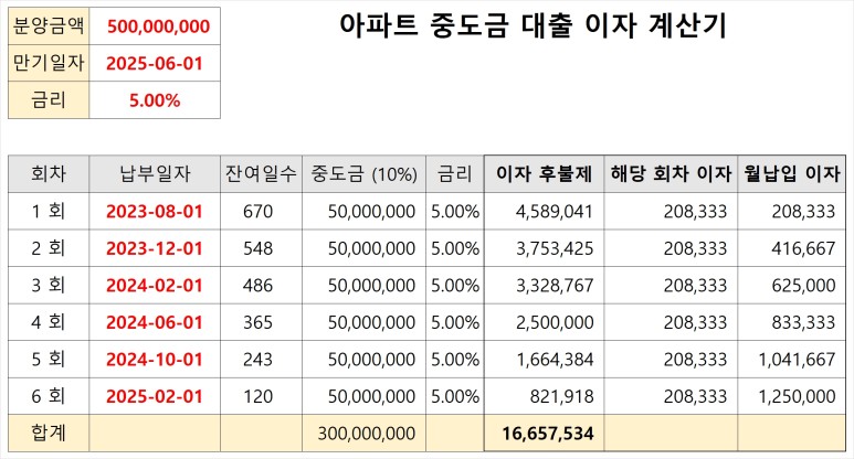 중도금대출 이자 계산기