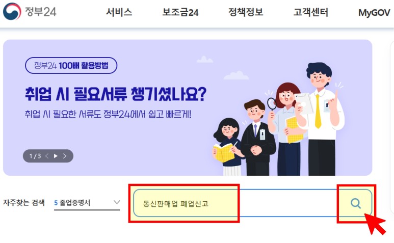 정부24홈페이지에서 폐업신고를 해볼게요.