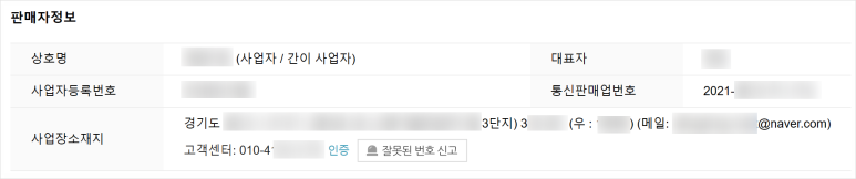 스마트스토어, 온라인 쇼핑몰 그리고 홈페이지에는 사업자정보가 공개됩니다.