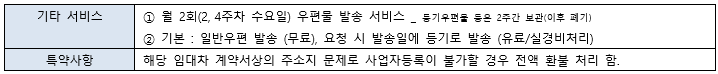 우편물 관리, 실사 지원 외에도 회의실 지원, 법무세무 제휴 등 다양합니다.