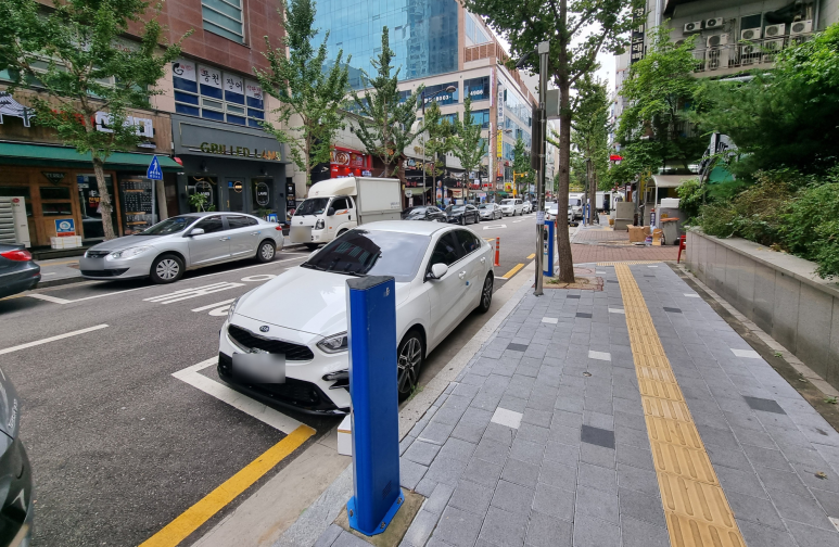 도로 가장자리에 주차면을 확보하여 주차장으로 운영하고 있는데요.